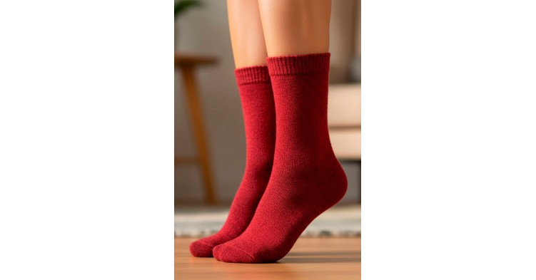 Женские красные носочки с аккуратно вывязанной пяткой подарят тепло и комфорт в холодное время года. Мягкая смесь шерсти и акрила бережно согревает стопы, а насыщенный красный цвет и аккуратная отделка делают носки стильным и уютным аксессуаром для дома и повседневной носки.