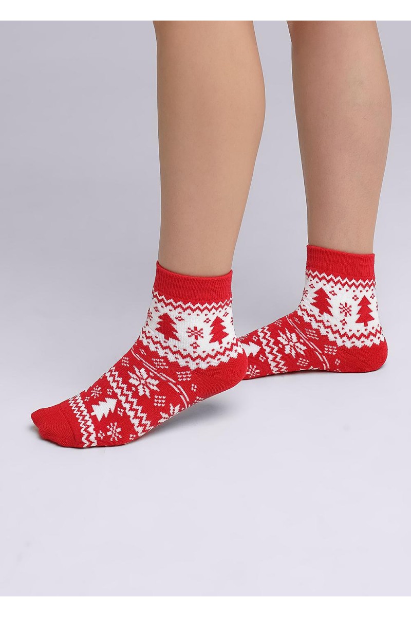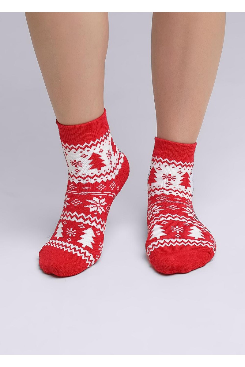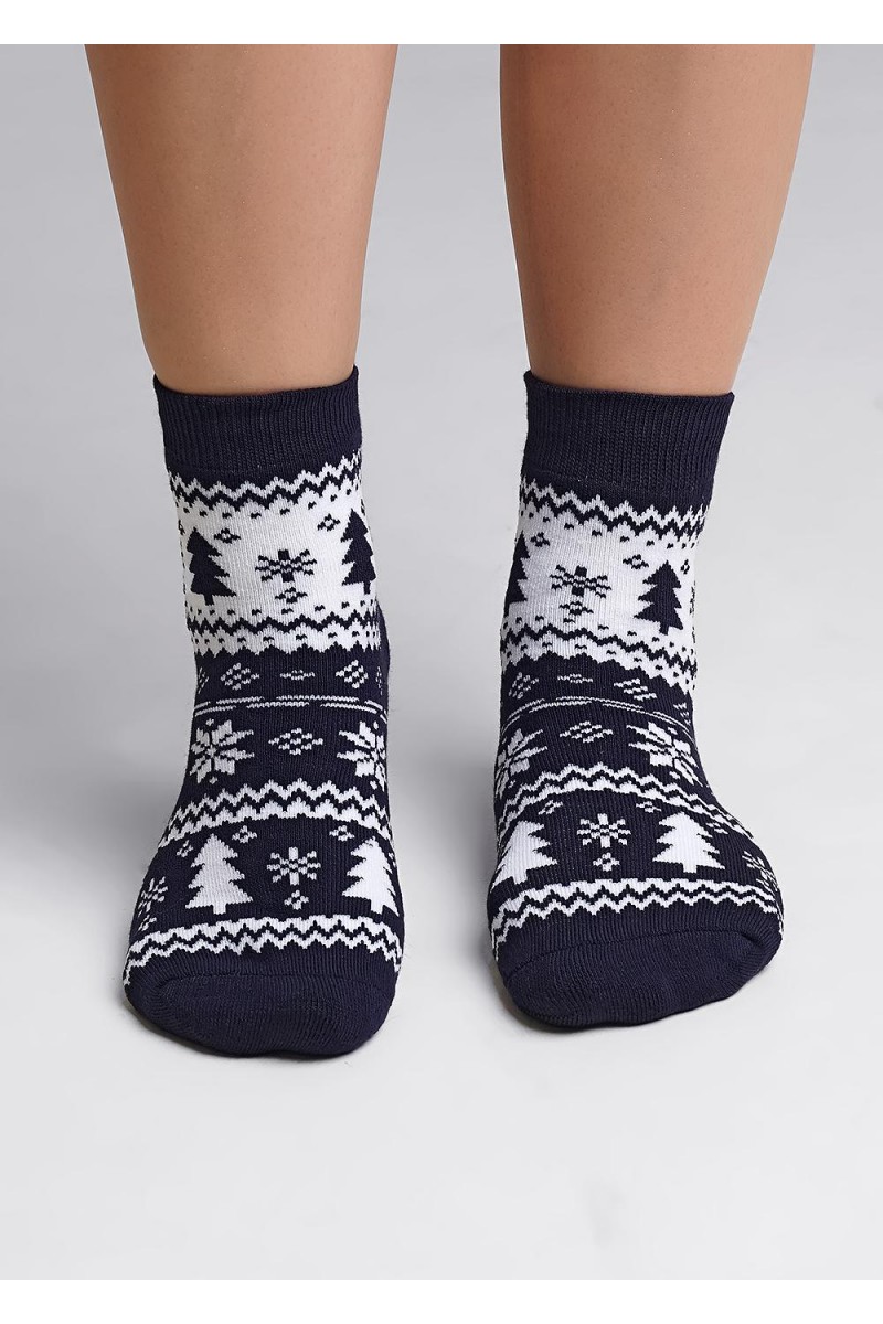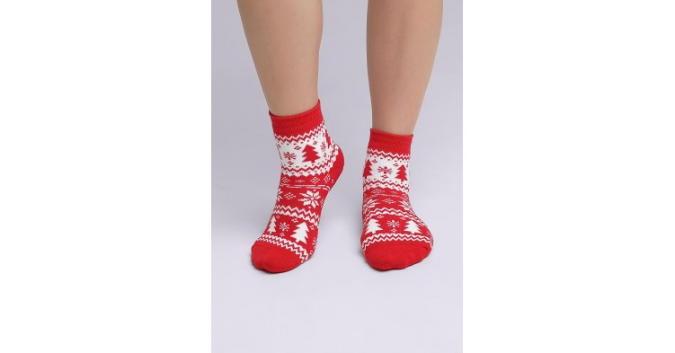 Новогодние носки из хлопкового полотна с добавкой полиамида и эластана. Прочная и эластичная ткань приятна для тела, прекрасно пропускает воздух, впитывает воду, не электризуется и подходит для чувствительной кожи. Добавка в носки полиамида повышает прочность, а эластана придает им дополнительную эластичность. Мягкие носки с орнаментом прекрасно подходят для повседневного использования и в качестве подарка на Новый Год и Рождество.