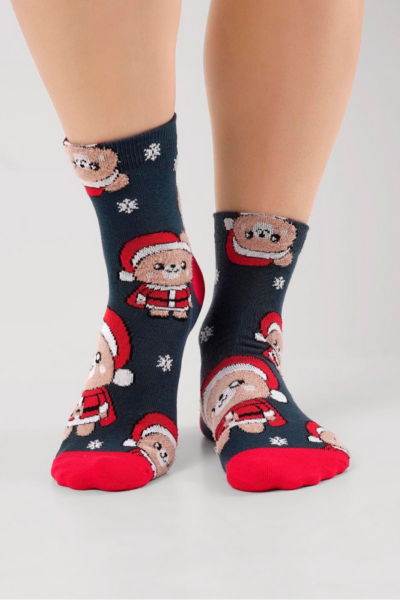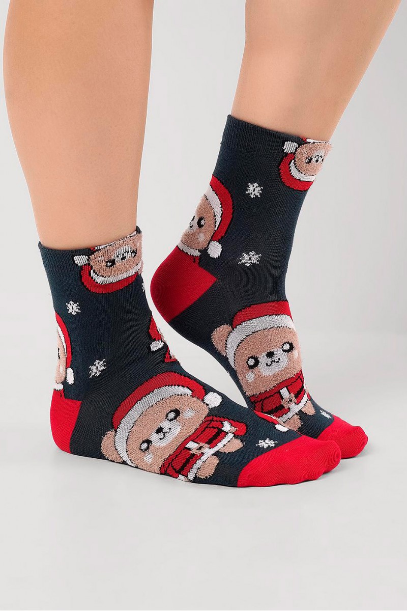 Женские носки с рисунком мишки в новогоднем костюме выполнены из хлопкового полотна с добавлением полиамида и эластана в сочетании с пряжей травка. Мягкий хлопок, входящий в состав изделия, обладает высокой воздухопроницаемостью, впитывает влагу и подходит для чувствительной кожи. Добавление эластана увеличивает износостойкость и прочность. Удобные носки дополнены анатомической резинкой, которая создает эффект распределенного давления и минимизирует проявления усталости. Мягкие носки прекрасно подходят для повседневного использования, занятий спортом и активного отдыха.
