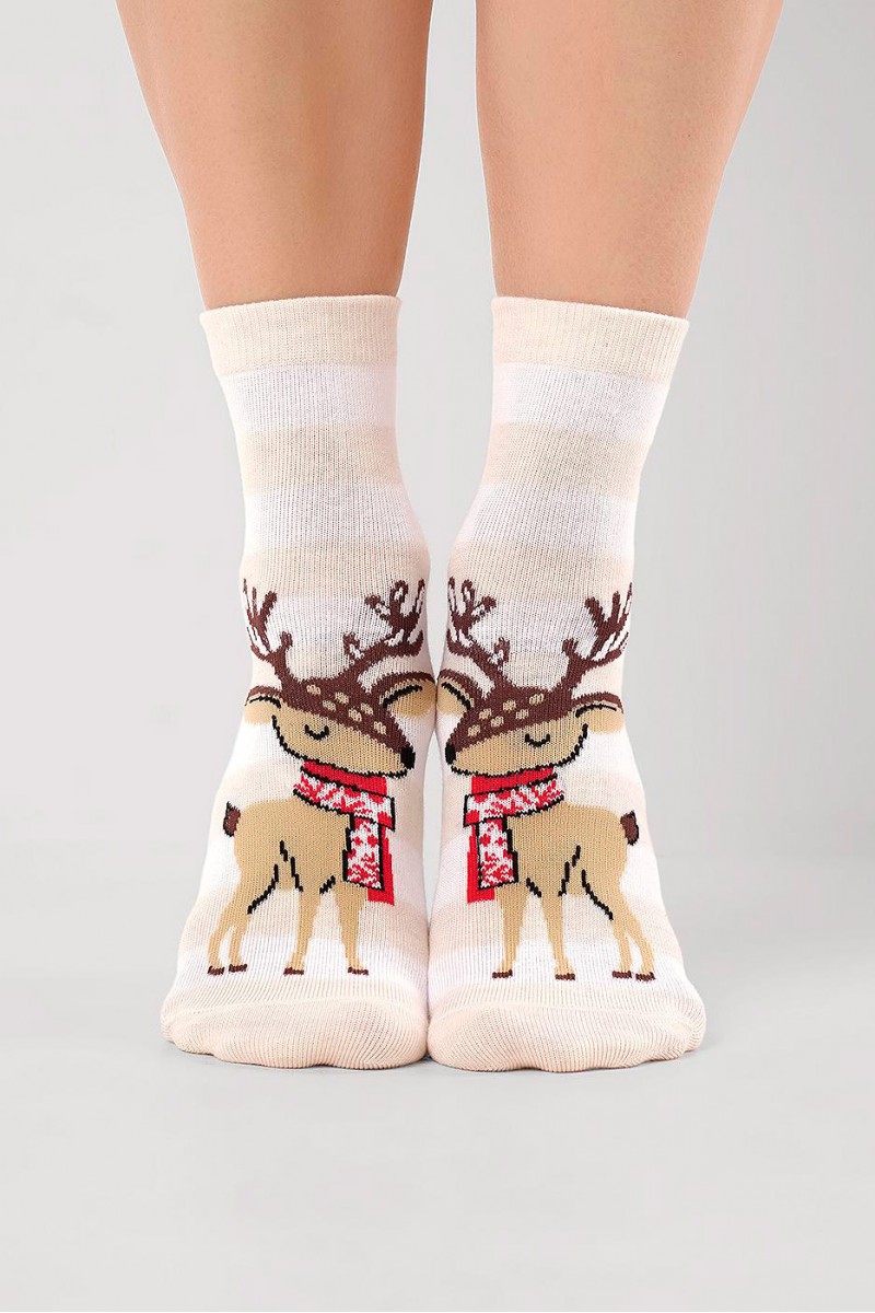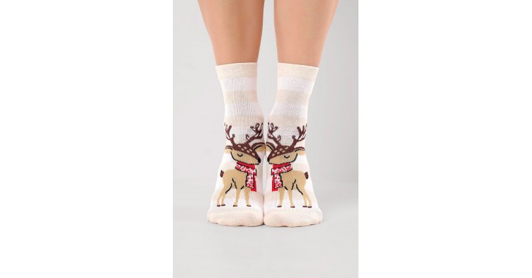 Женские носки с рисунком оленя в новогоднем шарфе. Мягкий хлопок, входящий в состав изделия, обладает высокой воздухопроницаемостью, впитывает влагу и подходит для чувствительной кожи. Добавление эластана увеличивает износостойкость и прочность. Удобные носки дополнены анатомической резинкой, которая создает эффект распределенного давления и минимизирует проявления усталости. Мягкие носки прекрасно подходят для повседневного использования, занятий спортом и активного отдыха.