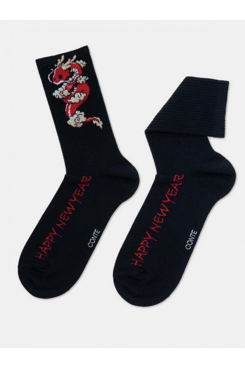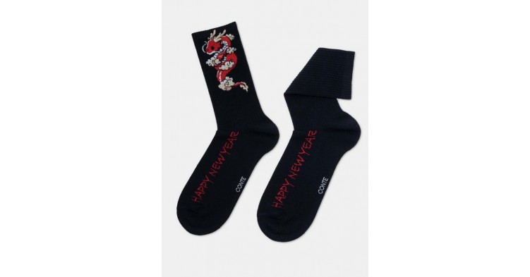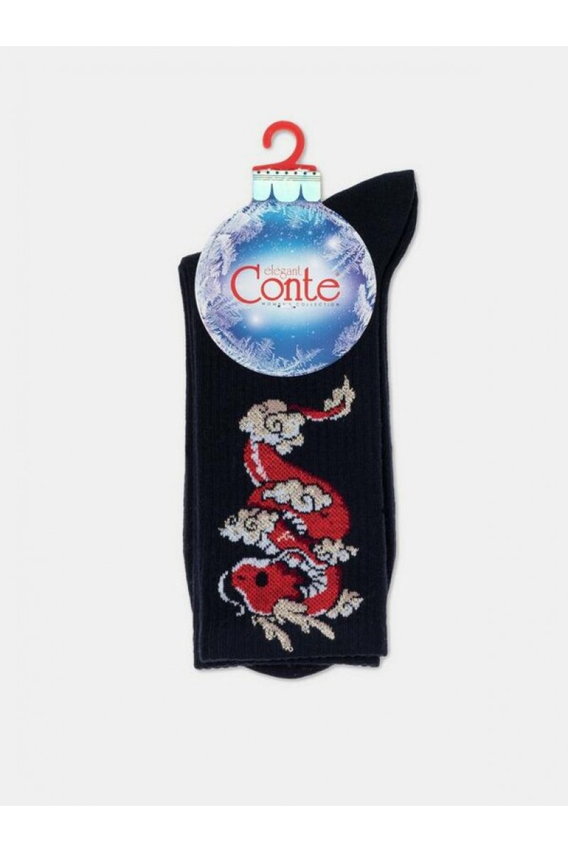 Женские высоки носки с принтом в виде дракона — отличный подарок на Новый год или Рождество. Широкая резиночка не падает и не передавливает ногу.