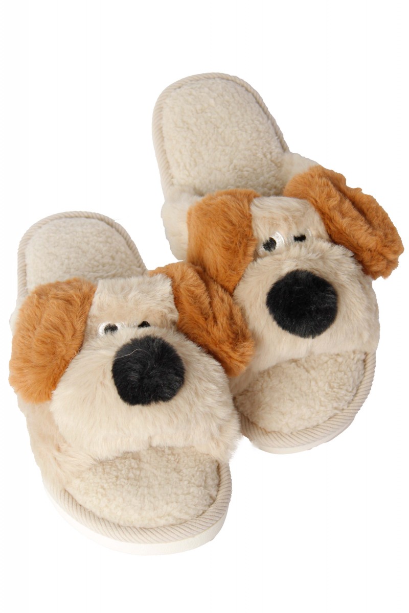 Меховые тапочки с открытым носом подарят уют и хорошее настроение благодаря милому дизайну с мордочкой собачки и ушками спереди. Мягкий мех обеспечивает комфорт и приятные ощущения при ходьбе. Лёгкая резиновая подошва обладает противоскользящими свойствами и устойчива к влаге, что делает тапочки практичными и безопасными. Идеальны для дома — тёплые, стильные и невероятно удобные. Обратите внимание, что обувь маломерит на 1-1,5 размера.