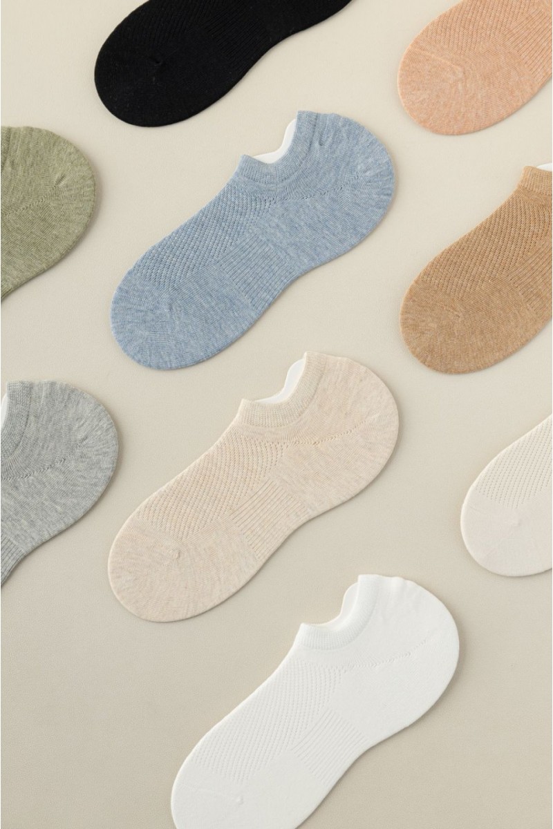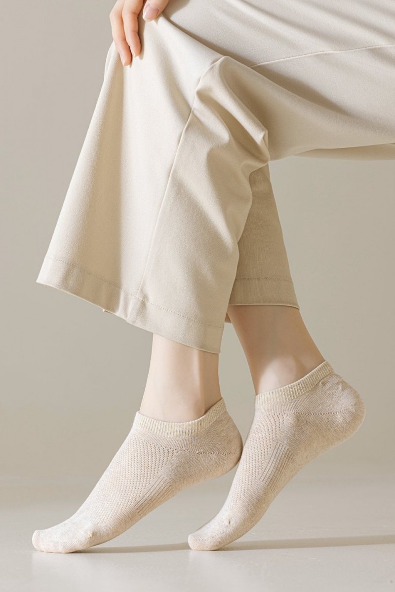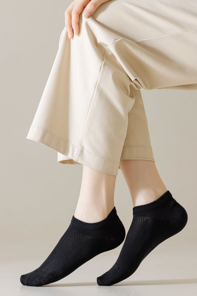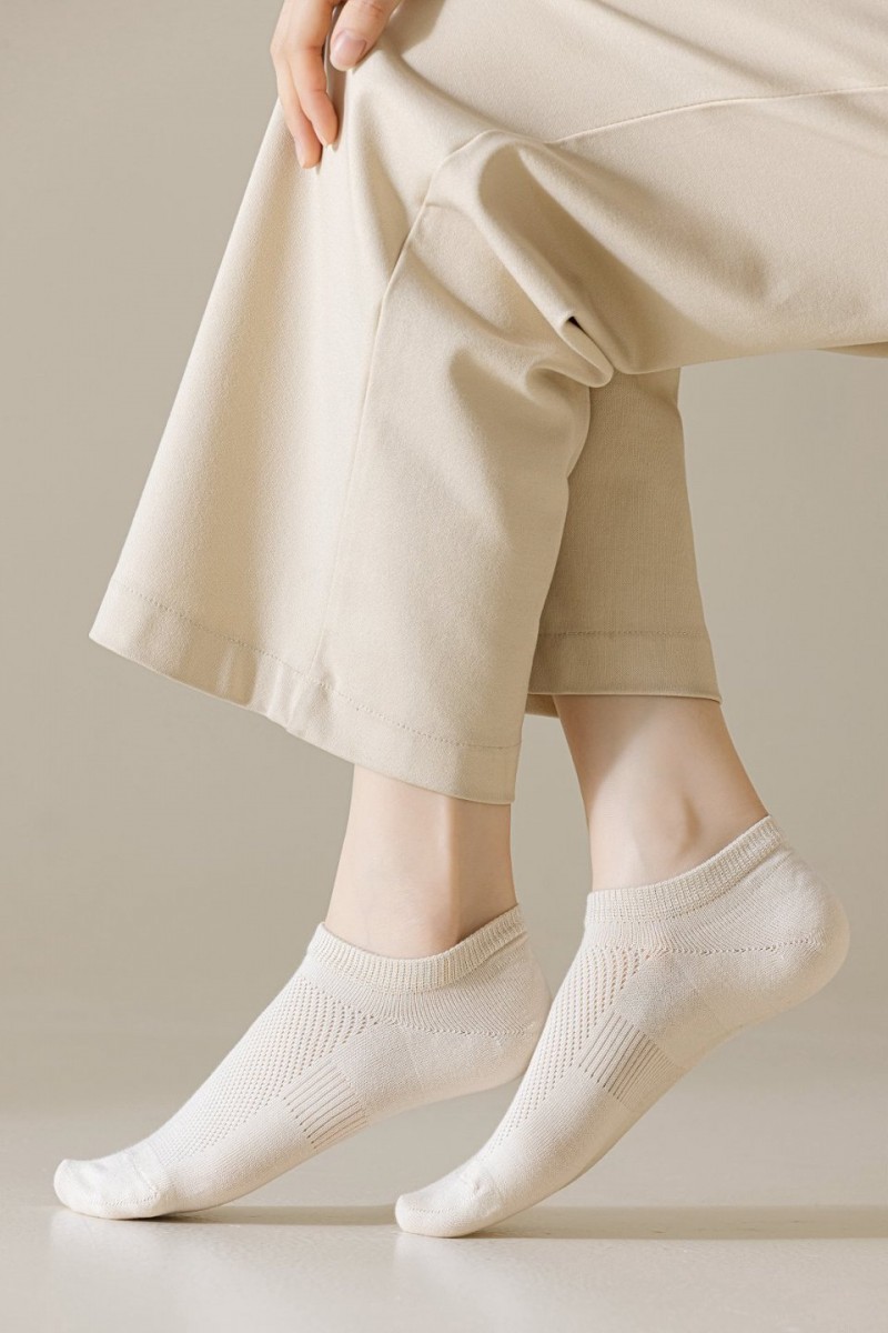 Женские закрытые подследники с перфорацией из мягкого хлопкового трикотажа. Силикон со внутренней стороны на пяточке предотвращает соскальзывание. Прочные нити полиамида и эластана в составе ткани делают её износостойкой. Модель подойдет на лето и для межсезонья. Высота идеальна для кроссовок и ботинок. Такие укороченные носочки исключают натирание кожи при контакте с обувью, при этом незаметны под ней.
