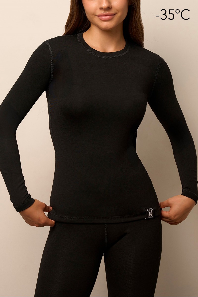 Облегающий термолонгслив из плотного трикотажа с начёсом — универсальный вариант для повседневной носки, спорта и активного отдыха. Подходит для температур от +5°C до -35°C. Материал с начёсом внутри отлично сохраняет тепло, быстро отводит влагу и пропускает воздух. Прилегающий крой делает футболку незаметной под одеждой и удобной в качестве первого слоя. Добавление эластана обеспечивает долговечность даже при частых стирках. Можно носить как термобельё или как самостоятельную вещь.