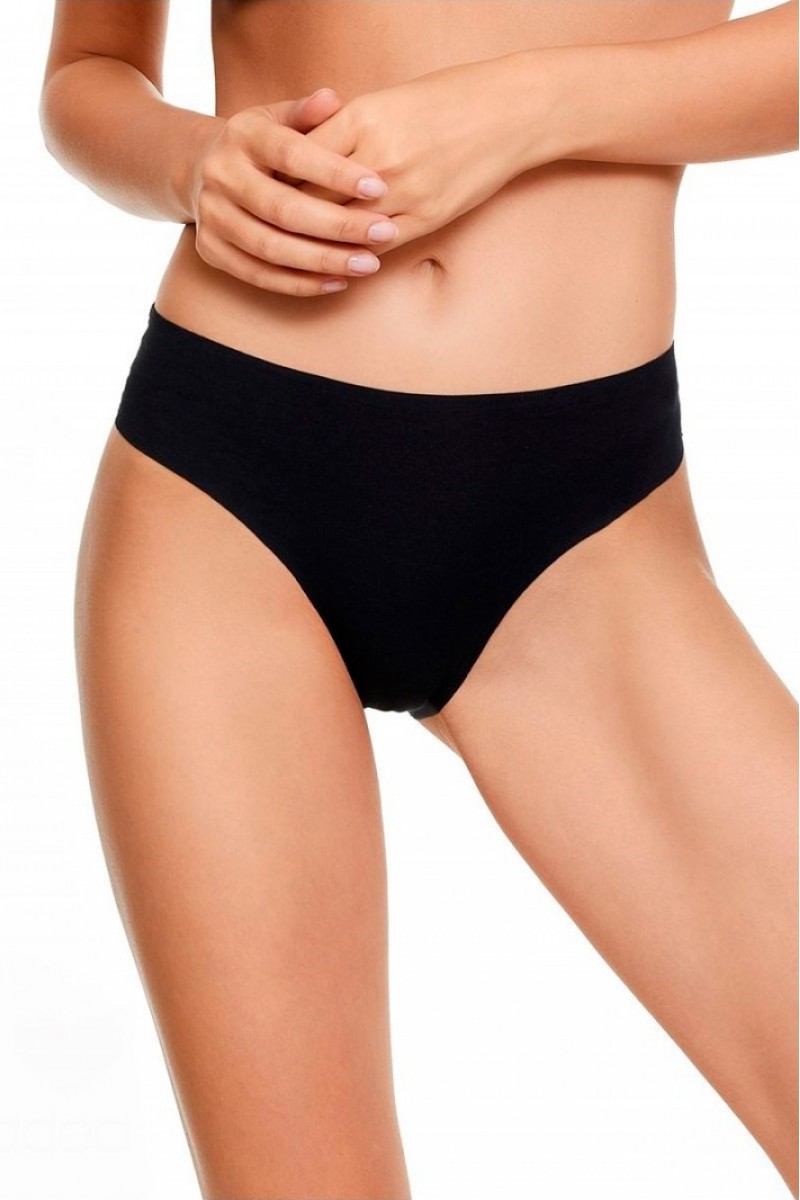Трусики бразилиана со средней линией талии и лазерной обработкой края. Модель выполнена из хлопка и полиамида с добавлением эластана, превосходно тянется и сидит на фигуре. Идеальный вариант под облегающий наряд. Передняя деталь трусиков гладкая, бесшовная. Задняя с овальным широким тканевым поясом, ниже которого изысканное эластичное кружево с цветочным узором и швом по середине.