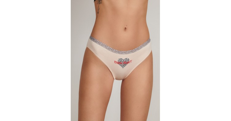 Женские слипы из хлопка, бежевого цвета, с принтом, на мягкой резинке, средней посадки.
