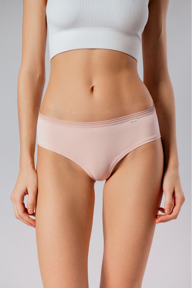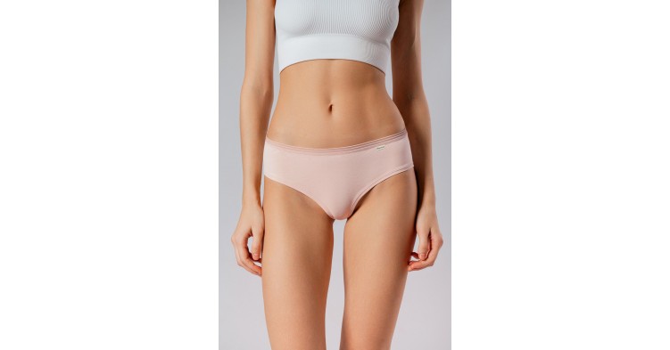 Женские слипы невысокой посадки сшиты из хлопкового трикотажа. Это базовые трусы женские из хлопка на каждый день. Выполнены в бежевом цвете, сидят ровно, практически не ощущаются на коже и не выделяются под одеждой.