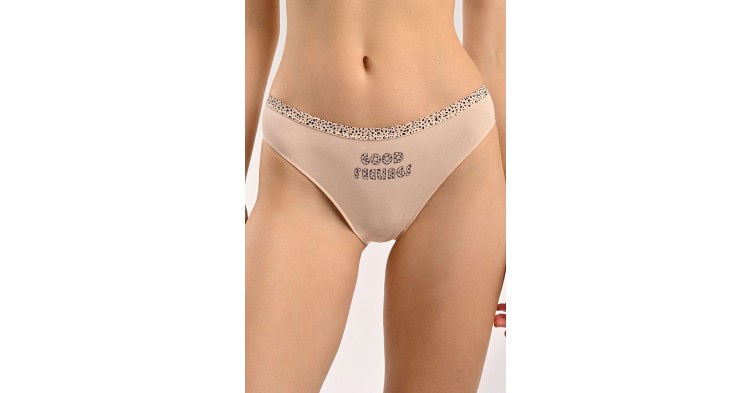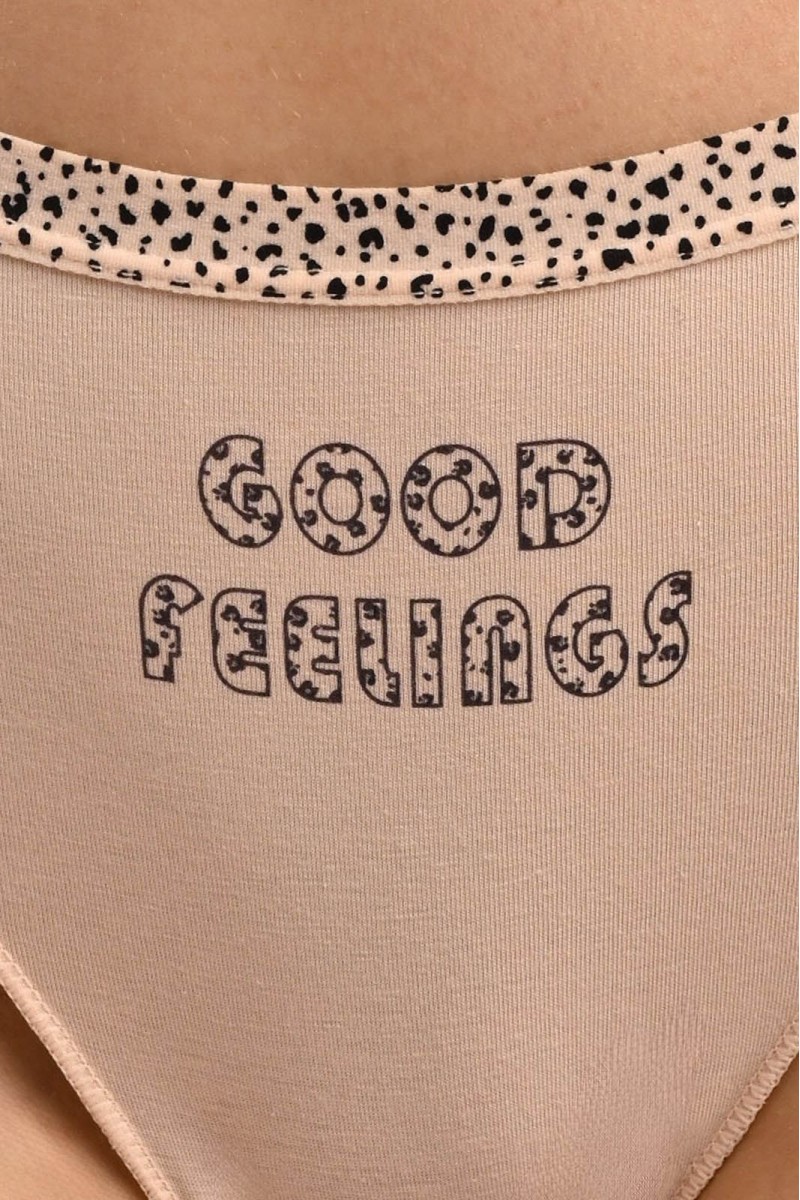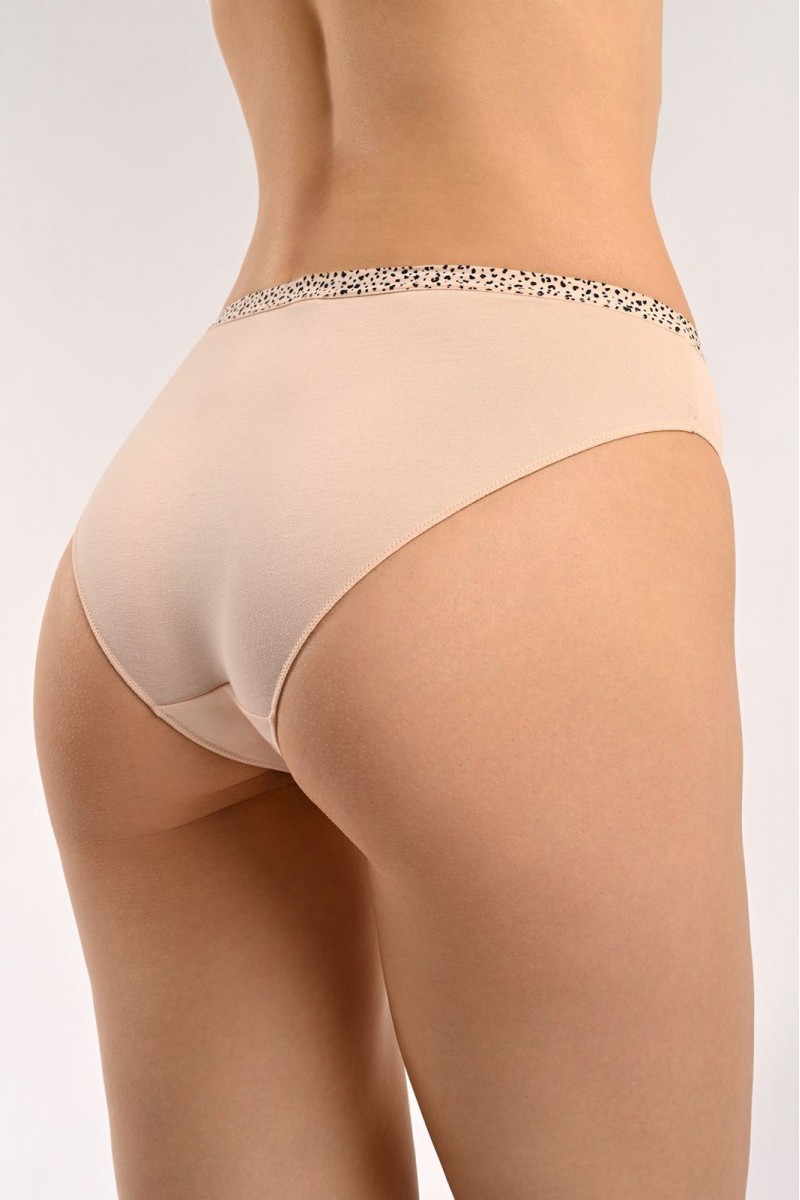 Базовая модель трусов на каждый день в спокойном бежевом цвете. Сшиты из мягкого хлопка и бамбука, почти не ощущаются на теле и позволяют коже дышать. Эластичный пояс с мелким принтом мягко прилегает, не сдавливая кожу, а лаконичная надпись добавляет настроения.