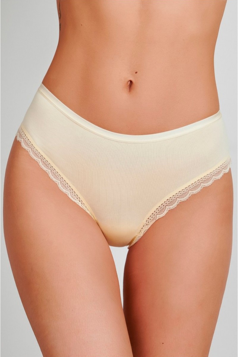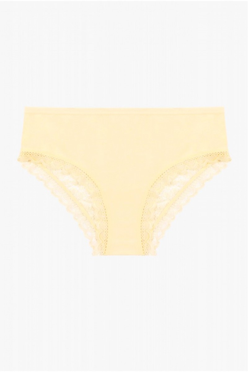 Женские трусы-слипы средней посадки желтого цвета выполнены из мягкого хлопка, что обеспечивает комфорт и приятные ощущения на коже. Кружевные вставки и задняя часть придают модели изысканный и женственный вид. Мягкая резинка гарантирует удобную посадку, не оставляя следов на коже. Эти трусики идеально подойдут для повседневной носки, сочетая стиль, элегантность и комфорт.