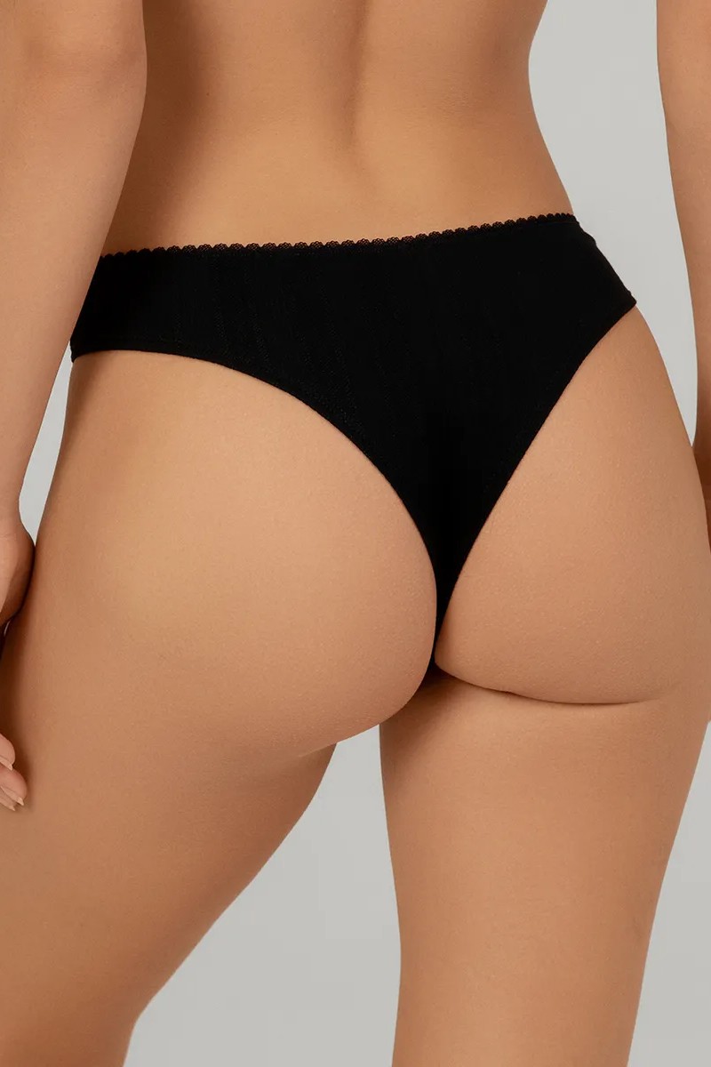 Трусики бразилиана женские однотонные, из деликатного перфорированного хлопкового полотна с добавлением нейлона и эластана, повышающий прочность и качество одежды, создавая идеальное облегание фигуры. Имеют среднюю посадку, мягкую и эластичную резинку по талии, удерживающие трусы во время носки. Модель декорирована кружевом. Гигиеничная хлопковая ластовица позволяет избежать трения и раздражения кожи. Удобная и комфортная модель для повседневного белья.